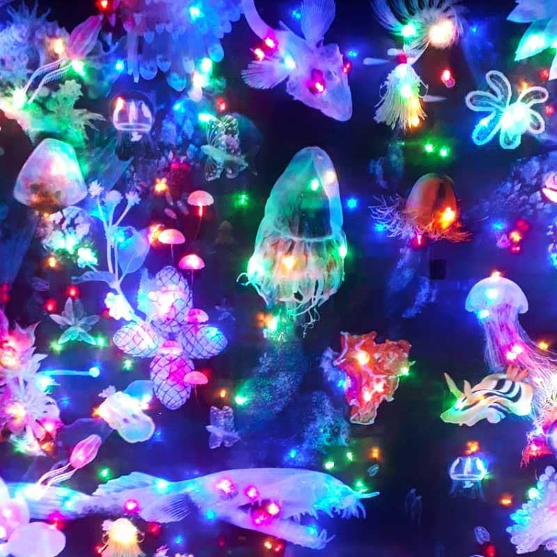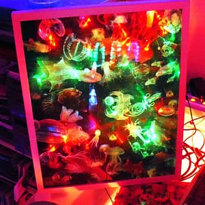 Abyssale Träume – Frische Träume in neuen Tiefen! Tauche ein in die geheimnisvollen Abgründe und entdecke verborgene Schätze der Ozeane. Mit präzise orchestrierten Lichtimpulsen und atemberaubenden Kreaturen verwandelt dieses LED-Kunstwerk dein Zuhause in eine faszinierende Unterwasserlandschaft. Erlebe eine beruhigende und zugleich elektrisierende Atmosphäre, die hypnotisch und transformatif wirkt.