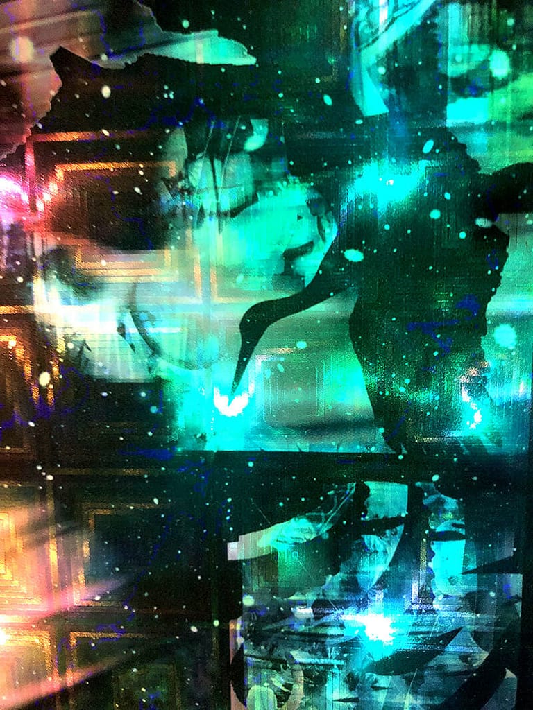 Dieses Kunstwerk bringt funkelnde Sterne, prächtige Planeten und urzeitliche Wesen in leuchtender Schönheit an Deine Wand und verleiht Deinem Raum einen mystischen Flair. Tauche ein in die abstrakte Atmosphäre geheimnisvoller Schattenspiele und entdecke die verborgenen Mysterien oder lasse Deiner Fantasie freien Lauf.