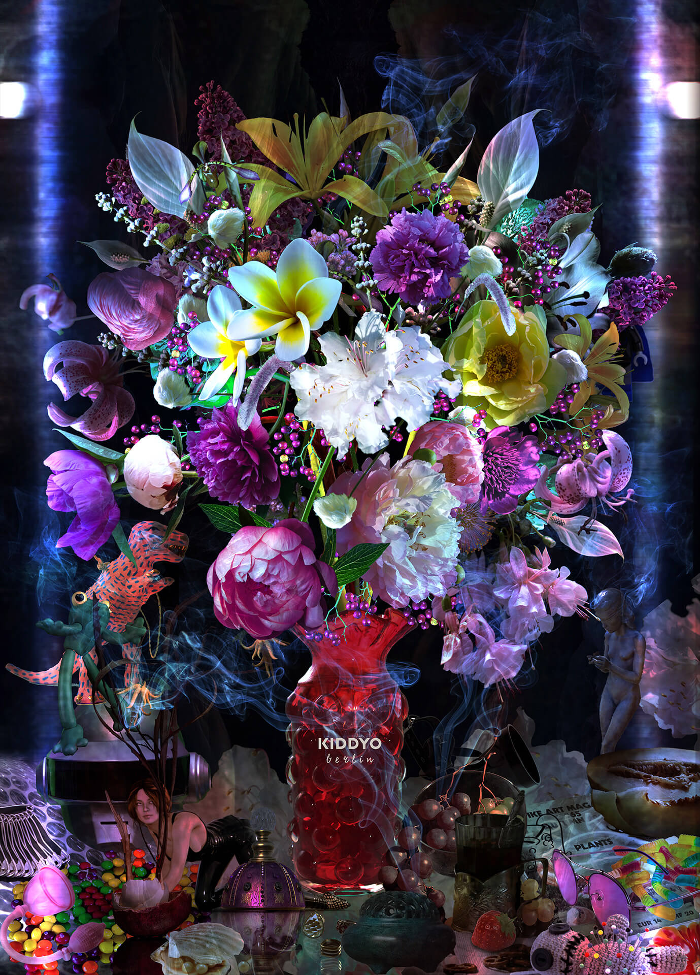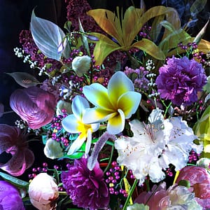 Lass dich von den Pfingstrosen verführen, deren süßliche Aromen von Romantik und Frühlingsanfängen flüstern. Erlebe, wie die tiefen, fast mystischen Töne der Lilien Geschichten von Leidenschaft und Erneuerung erzählen. Fühle die exotische Wärme der Frangipani, deren betörende Düfte dich in ferne, sonnendurchflutete Paradiese entführen. Jede Blüte in diesem Strauß repräsentiert eine Einladung zum Feiern des Lebens und der Sinnlichkeit. „Spleen“ ist nicht nur ein Kunstwerk, es ist eine Ode an die Momente der Sinnlichkeit.