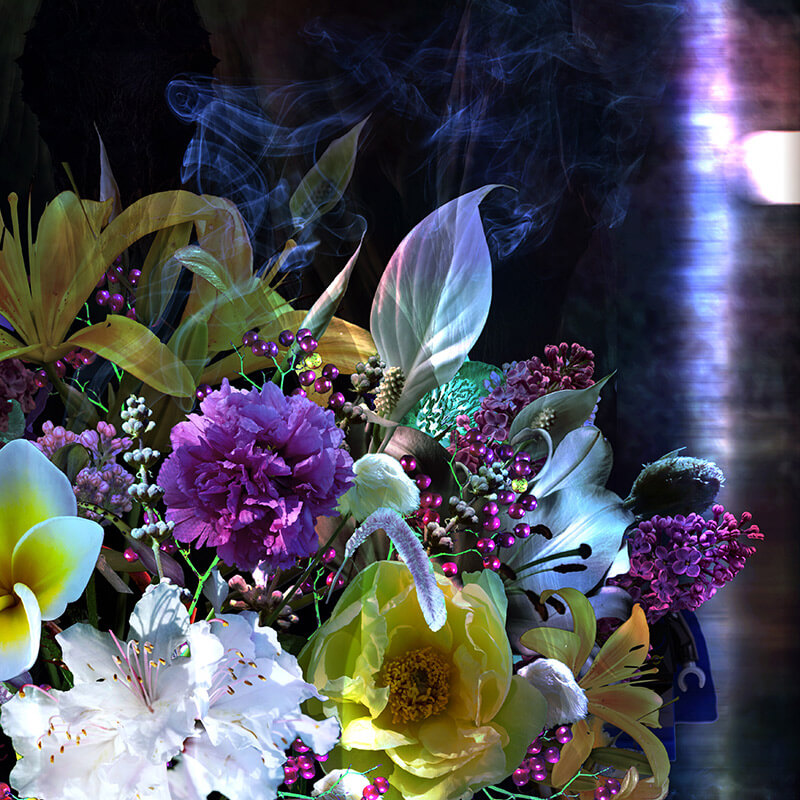 Dieses LED-Wandbild entfacht ein Feuerwerk der Sinne mit einem prachtvollen Bouquet. Um die Vase herum entfalten sich kunstvolle Details in einem opulenten Schaustück, das das Auge zu Wandern veranlasst.