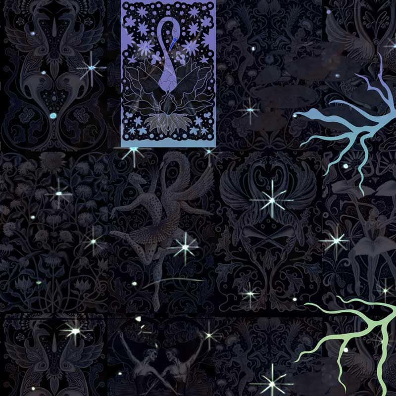 Ein romantisches LED-Wandbild, das die märchenhafte Gestalt der Geister im Teich opulent darstellt und zugleich auf ein minimalistisches Muster reduziert. Mystisch, anmutig und galant tanzen die Schwäne in schillernder Silhouette.